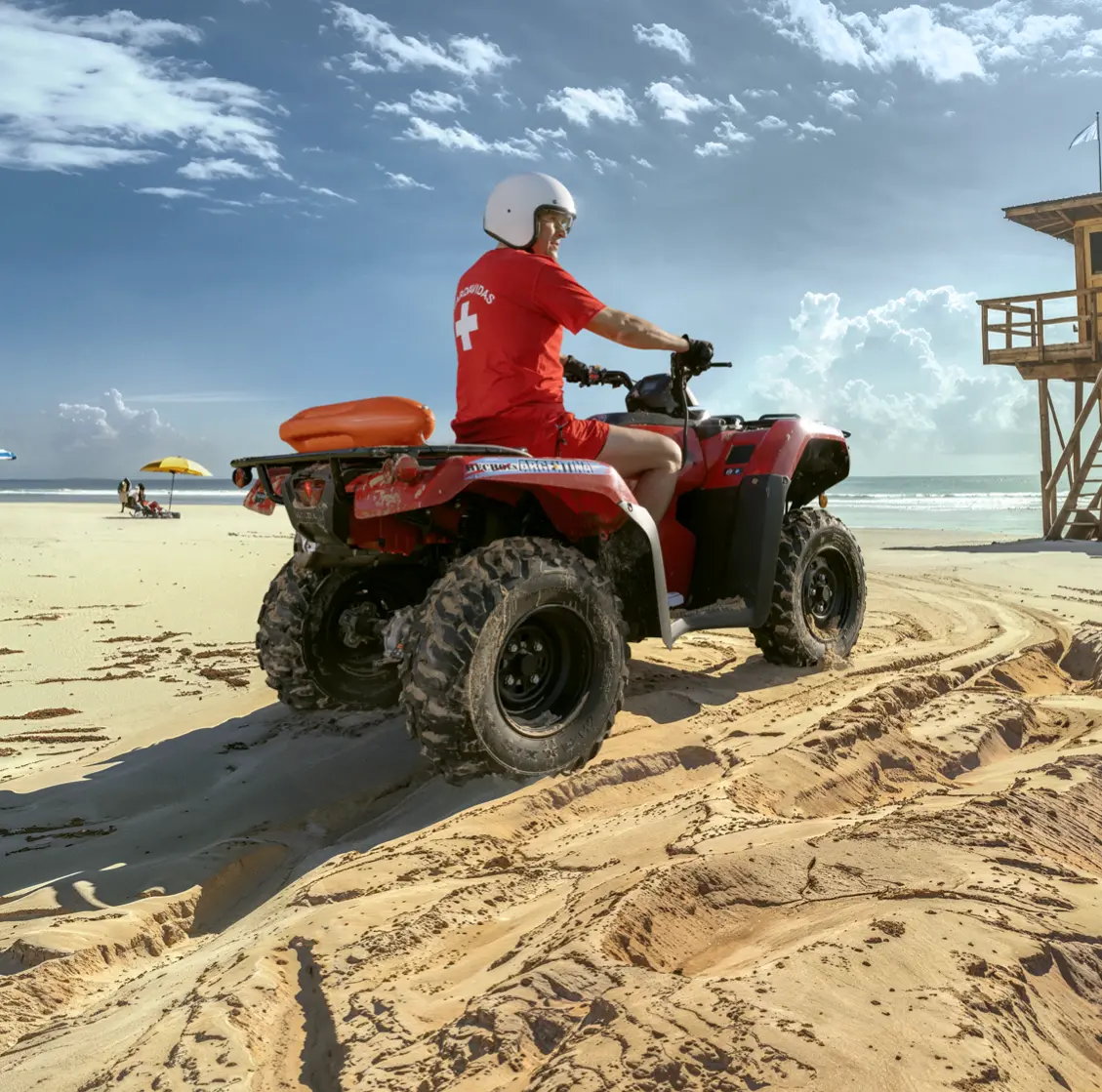 El TRX420 es un vehículo ideal para guardavidas, ya que permite actuar con rapidez ante situaciones de emergencia en zonas playeras.